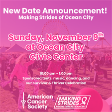 American Cancer Society: New Date Announcement! Making Strides of Ocean City – Sunday, November 9